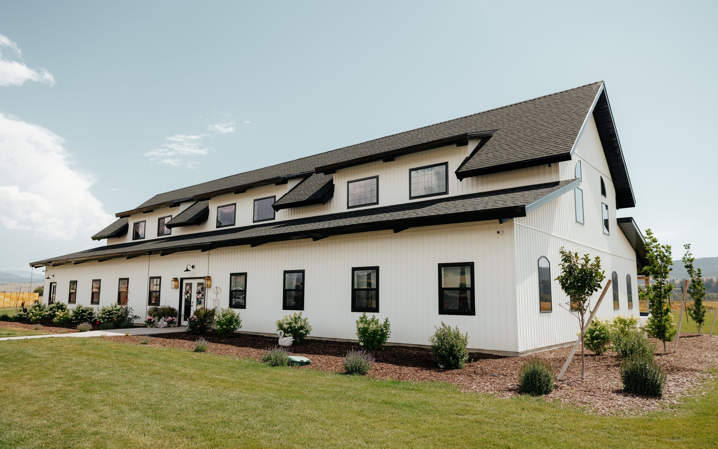 Rainey Creek Estate is a family-owned and operated event venue that offers a barn with 4,800 square feet of indoor space, and a large outdoor lawn catering to year-round, all-weather events. The barn features a prep kitchen with a service bar, restrooms on the main floor, and a private bridal loft. The large, manicured lawn stretches from the patio to the pond, offering nearly an acre of space for various activities. Regardless of the setup, panoramic mountain views provide a stunning backdrop in every direction.